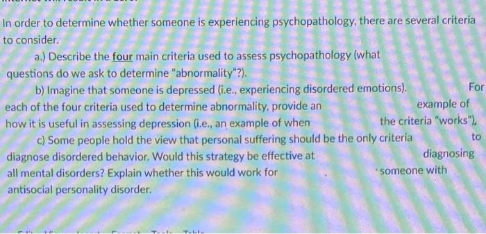 Link shows lifetime prevalence ratesthe percentage of people in a. Response times may vary by subject and question complexity. In order to determine whether someone is experiencing psychopathology there are several criteria to consider.